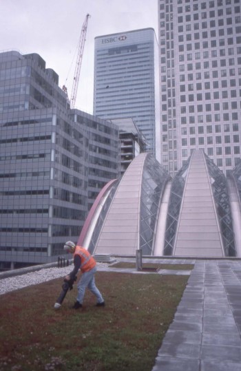Sedum at Canary Wharf, a red/green carpet for the delight of office workers looking down from above.