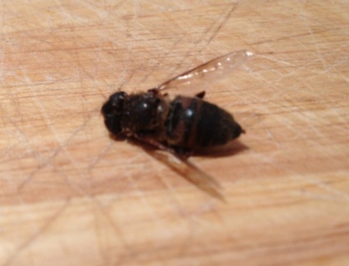 This, it appears, will have to count as my first hoverfly of the year. It’s a drone fly, Eristalis tenax, fished out of the salt-filled outer compartment of the built-in water softener attached to washing machine and dishwasher in our holiday house in Yarmouth, on the Isle of Wight. Now how did that get in there?