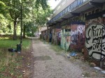 Actually, it was nowhere near as unnerving as I thought it might be. The sun was shining brightly, the air was alive with bees and butterflies. The gardens have run wild, the mown grass has grown shaggy, the pavements and cracked tarmac have acquired a green haze of thin vegetation. Overhead sparrowhawks were squealing.