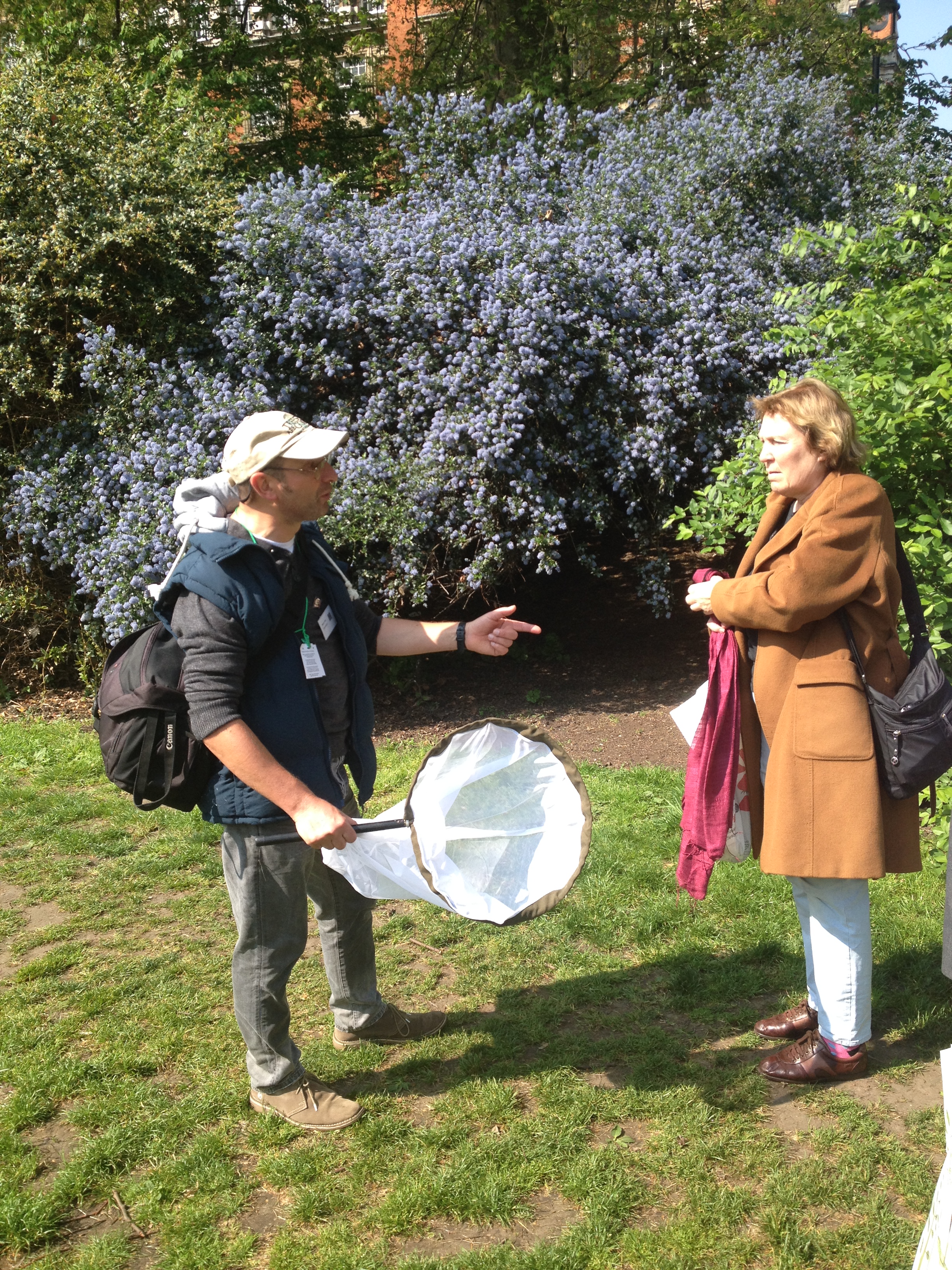 Steven Falk prepares to lead a pollinator walk in Victoria Tower Gardens next door to the Palace of Westminster. You can tell he’s an entomologist, by his hat.