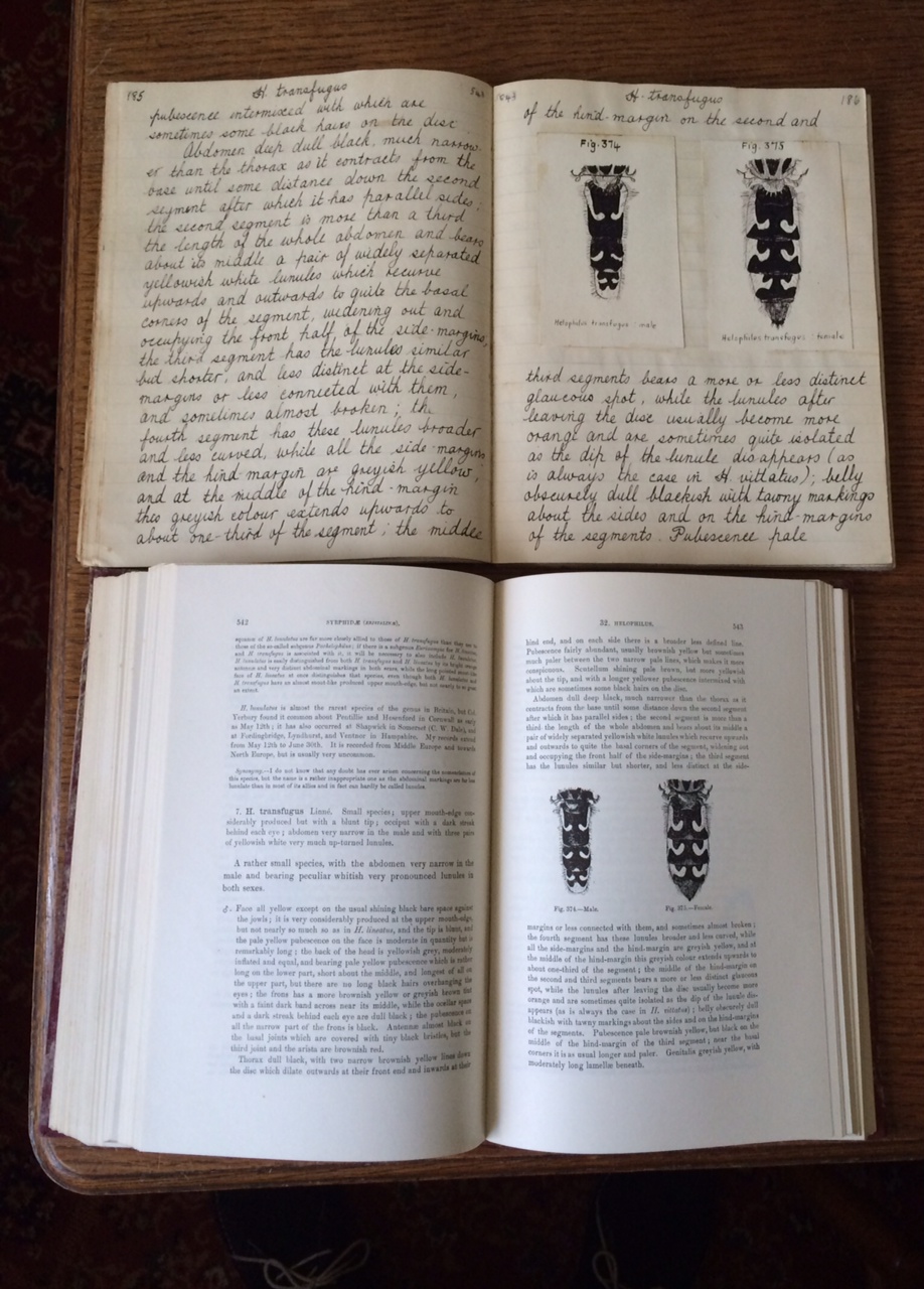 At that time the masterful monograph on the hoverflies, by the great George Verrall, was the most important book on the group, but it was huge, at over 800 pages, and was an expensive purchase beyond my father’s meagre means.