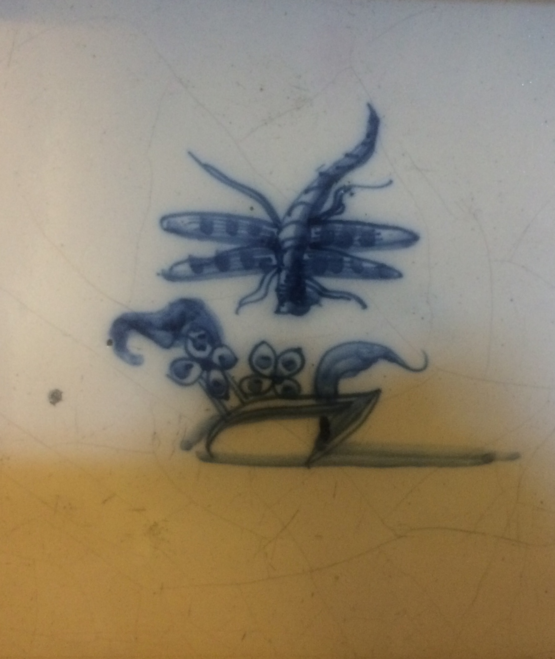 Ostensibly it’s a simple stylized tile around one of the fireplaces below stairs at the splendidly handsome 17th century National Trust property Ham House, near Richmond. And despite its wiggly tail and unfeasibly long legs of uncertain number, it is obviously a dragonfly. But what species?