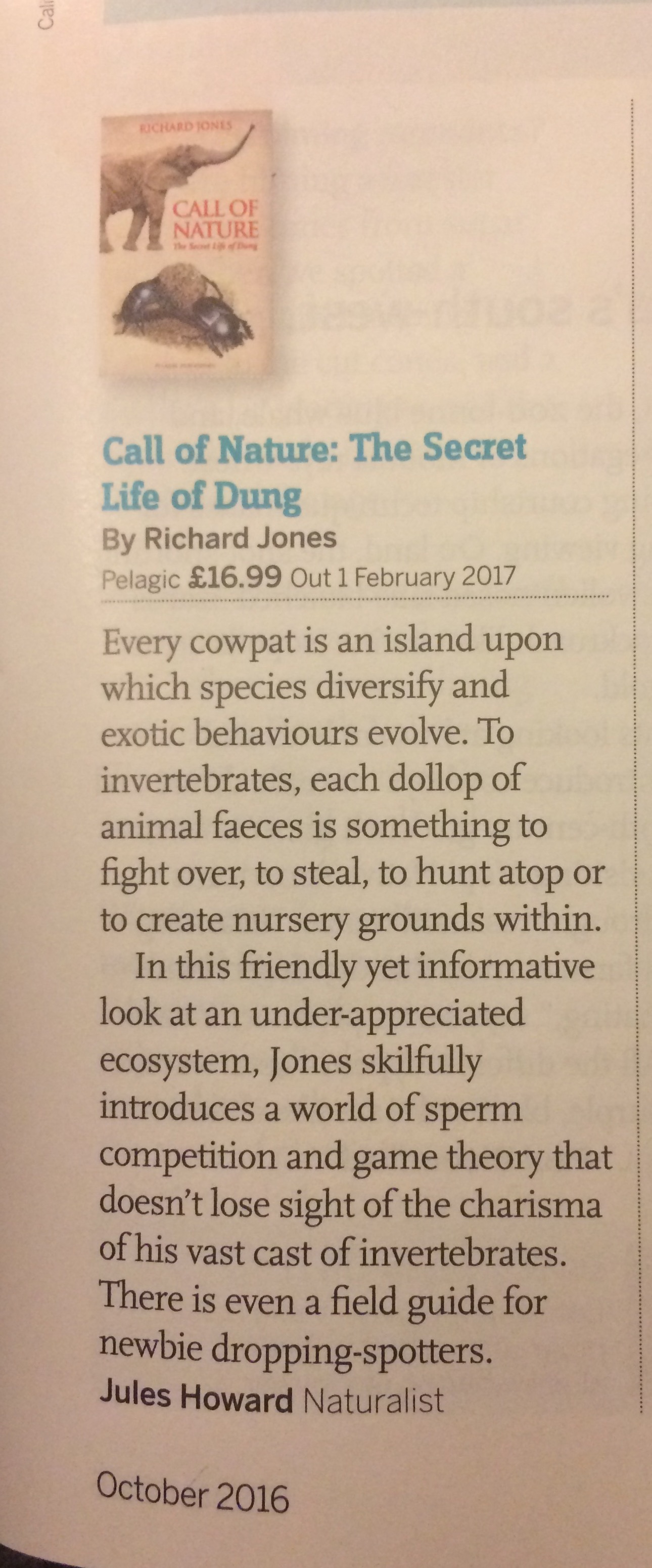 Call of nature: the secret life of dung drops onto the literary landscape in February, and will be coming to a bookshop near you. Or, at least, it’s coming to a bookshop near me — Bookseller Crow on the Hill, at Crystal Palace.