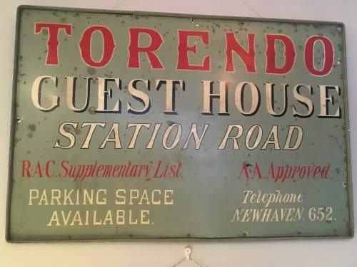 Torendo was named, apparently, for a previous owner’s three children, taking the first few letters of their names — Tom, Renie and Donald. In its heyday it had been a bed-and-breakfast guest house. The original painted metal sign, long mouldering in the loft, now hangs in my living room and still proudly announces its credentials. The TORENDO typeface, with its mid-line swash detailing is similar to that used on BONANZA and RAWHIDE, the famous western TV series of the 1950s and 60s, and was presumably meant to give the place an exotic air. When the new houses were built in Torendo’s former garden, number 3 of the 4 of them was called Tol Pereth, perhaps having a West Country sound to it, but it was actually an anagram of ‘plot three’.