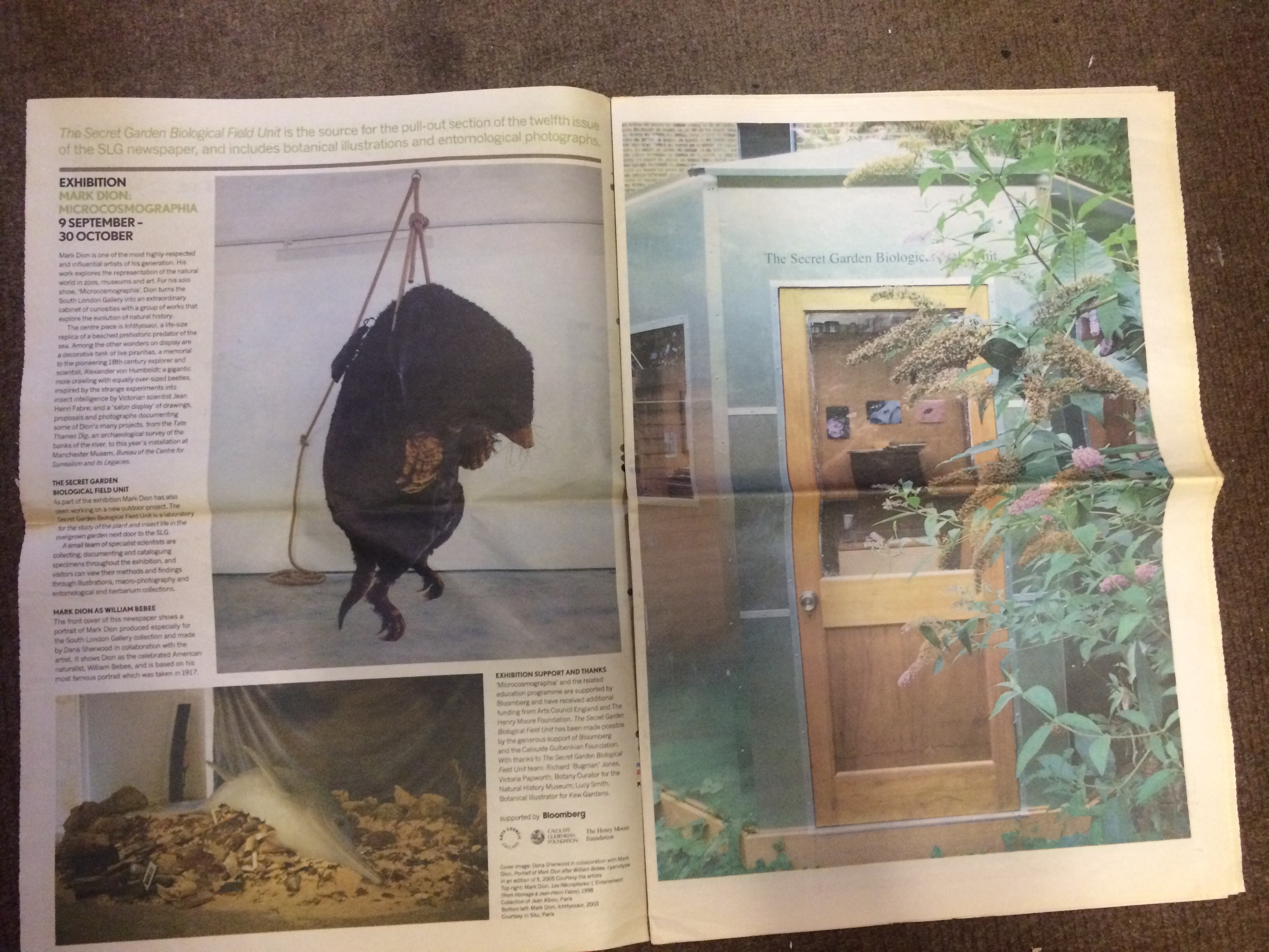 Part of the newsletter from the South London Gallery explaining what the shed and its contents was all about. The giant dead mole was inside the main gallery — that’s another story.